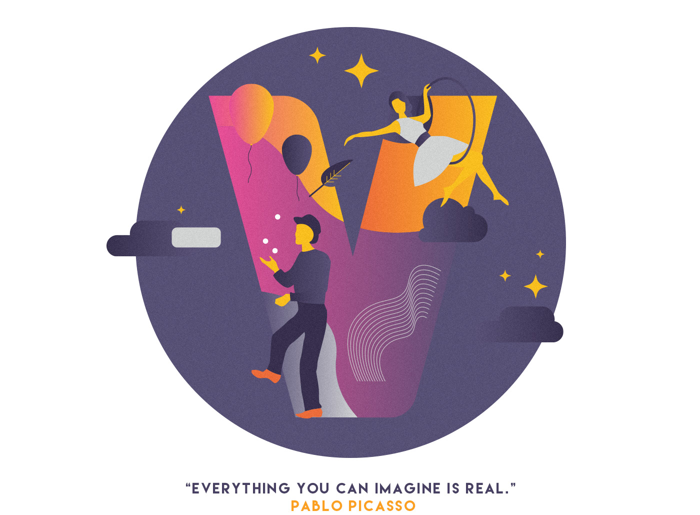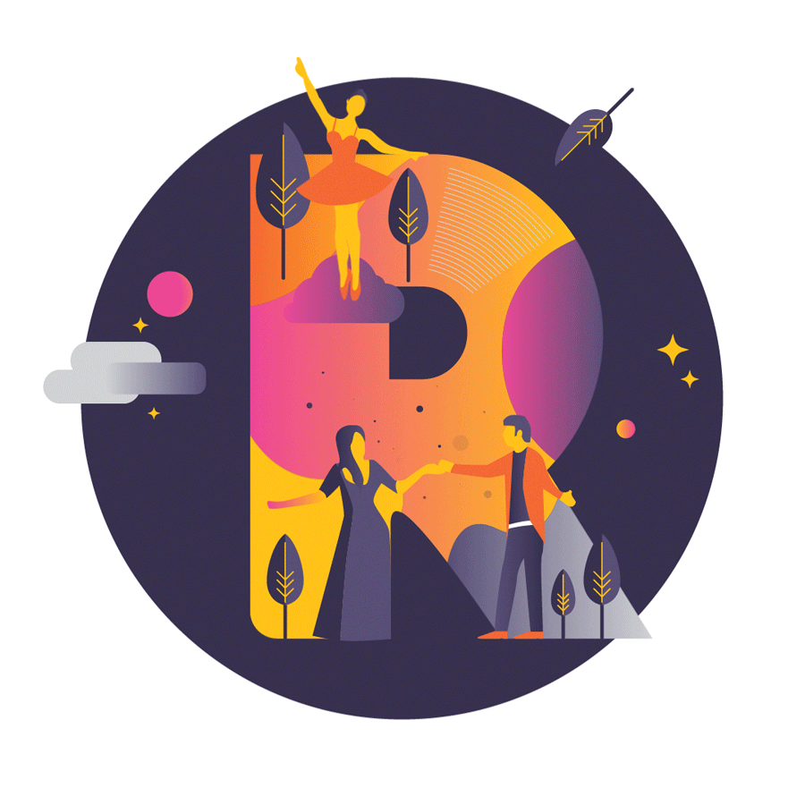 Bravo is a typographic illustration project aiming to represent the five arts, which historically were considered to be painting, sculpture, architecture, music, and poetry. Nowadays, the spectrum is a way bigger than this, extending to dance, performance art, filmmaking and so on, so we decided to get out from our visual comfort zone and try to represent some of them. As Nietzsche once said, "We should consider lost every day on which we have not danced at least once.” and we could not agree more. That's why we are super proud to show you the R, the second letter of the project, representing "dance".